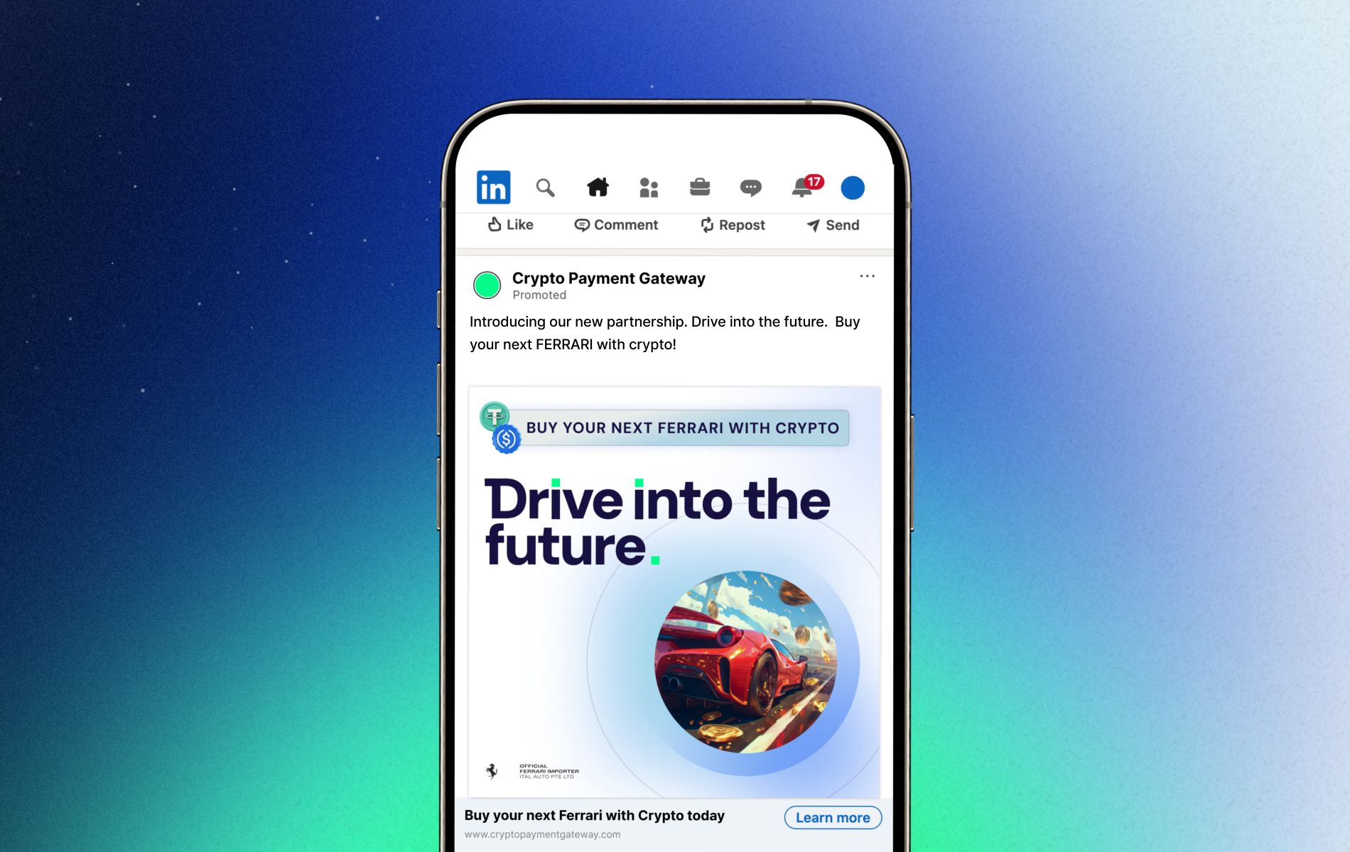 I was tasked with designing a social media visual to announce a major partnership between a luxury auto retailer and a crypto payments platform. The goal was to create a striking, brand-aligned asset that communicates trust, innovation, and elegance—without relying on clichés like stock imagery or generic crypto visuals.